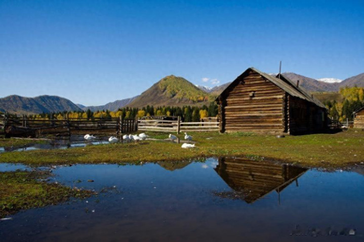 禾木村周边是原始森林。冬天,马是唯一交通工具。骑在马背上,马夫牵着缰绳,慢悠悠进山。雪没过马膝,呼哧呼哧喘着白气。树林里偶尔看见一串脚印,马夫说是狐狸的。顺着脚印走,也许能看见火红的狐狸在雪地里一闪而过。